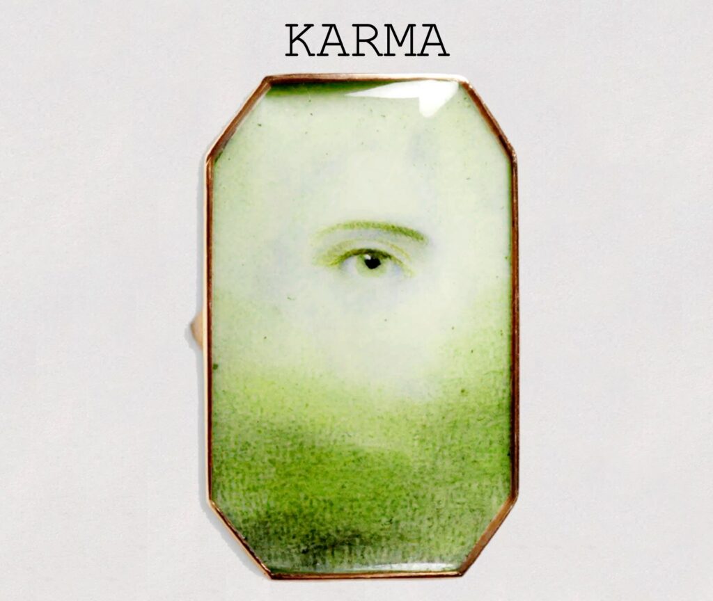 Karma is a bitch, please – blasphématoire much d’associer Karma et noms d’oiseaux ? De l’humain ou du Karma, qui est le plus garce ? À la fois beau et terrifiant, le mot convoque à lui seul l’utopie d’une justice pour l’ici et le futur, dans cette vie, ou une autre, le boomerang qui revient en pleine gueule. Pile, carnage, face, bonheur absolu, attention où vous posez les pieds !